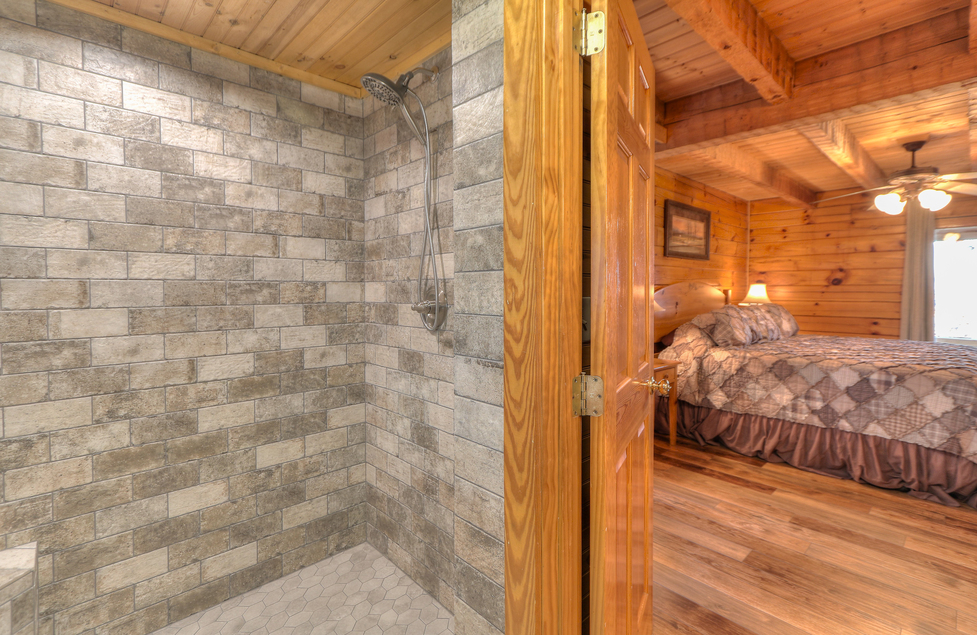 - Bedroom # 1 – King Bed, 32” TV, Private Bath with 4’x5’ Roll in Tile Shower, Sink